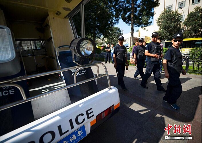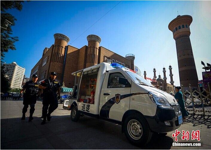 8月28日,一輛新型反恐電動(dòng)巡邏車亮相新疆首府烏魯木齊市國際大巴扎,該車由電力驅(qū)